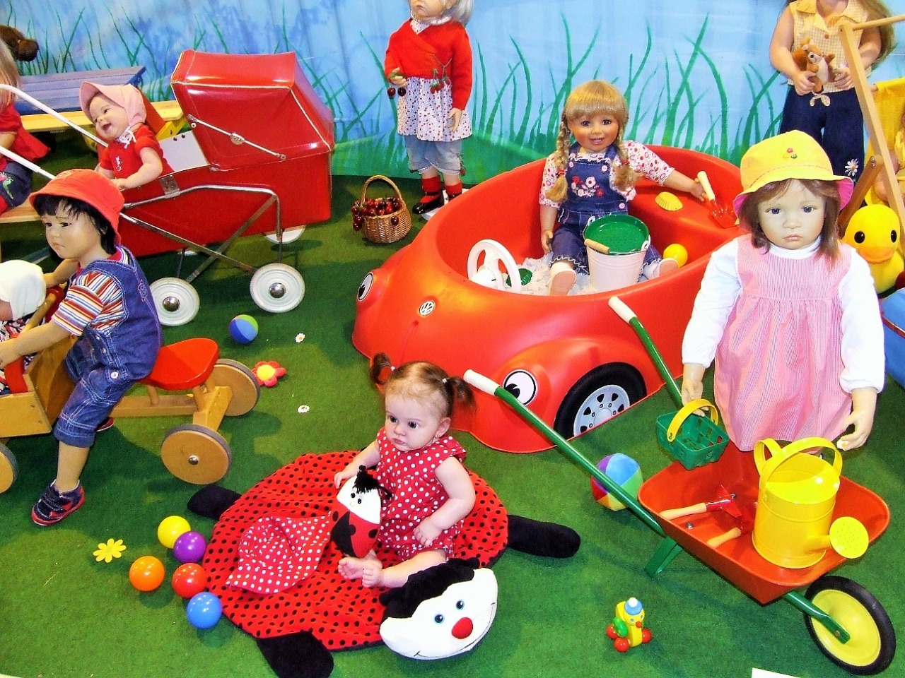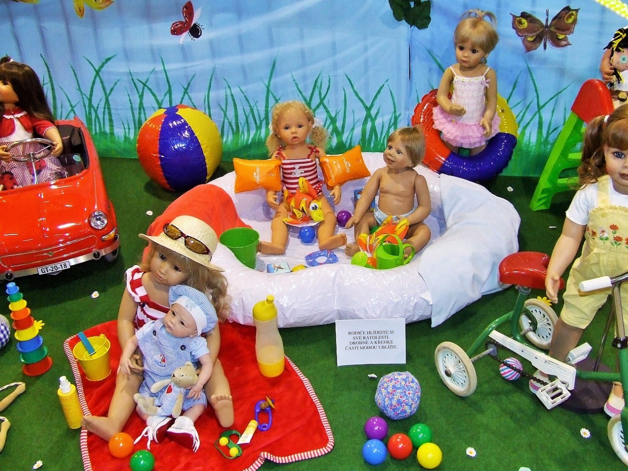 Jelikož i po covidu situace není nijak růžová, rozhodla jsem se pro expozici, která je plná barev a veselých zákoutí. Sice byla v plánu už pro rok 2020, ale za ten dlouhý čas se expozice ještě vylepšila v detailech a tak mohu tento rok představit první expozici, která má vytvořené vědomě i pozadí, což ocenil nejeden návštěvník a jsem za to moc ráda. Letošní téma jsem zvolila ala ,, REJDĚNÍ,, v mateřské školce a tak těch reborn miminek zase tolik k vidění nebylo, ale zato jsme vyvětrali naší mezinárodní garáž v podobě šlapacích autíček, také retro vozíky, koloběžky a další podobné kousky a já po letech mohla slyšet komentáře : V tom jsem se vozil, nebo to jsem také měl, což bylo milé a moskviče občas leckdo poklepal, aby zjistil, zda je pravý :-D. Odnesla jsem si z výstavy spousty zážitků, které nás opět naplnily energii do další práce a za to děkujeme.